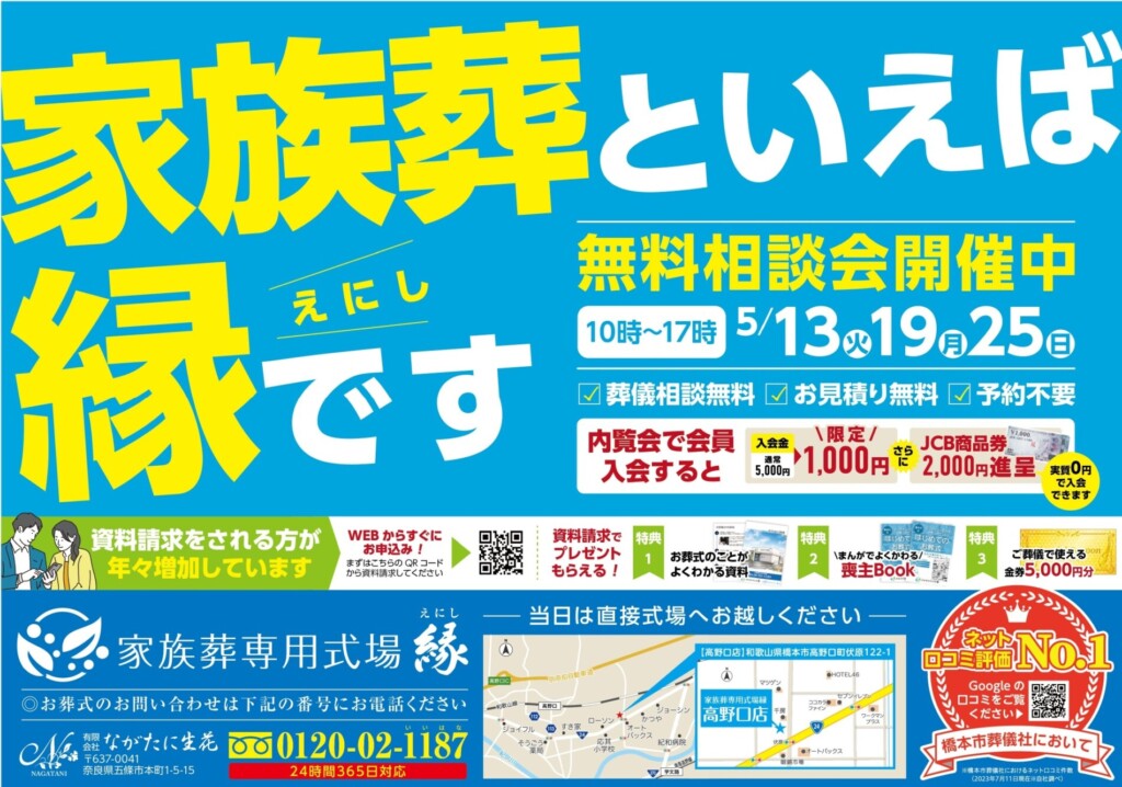 橋本市近郊で家族葬をお考えの方におすすめの無料相談会です。