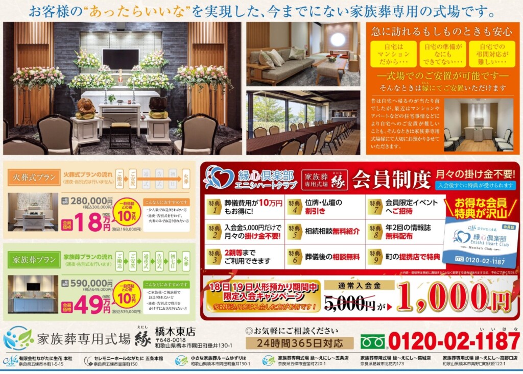家族葬専用式場「縁」橋本東店にて、